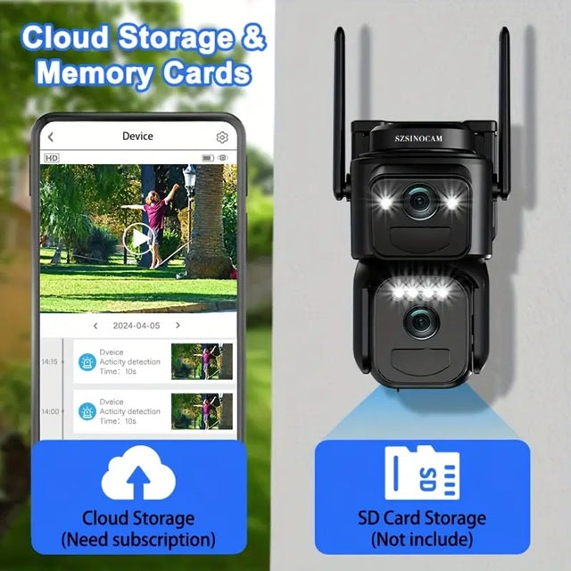Camara wifi de 2 lentes, resolución Ultra HD 4K y visión nocturna a color.